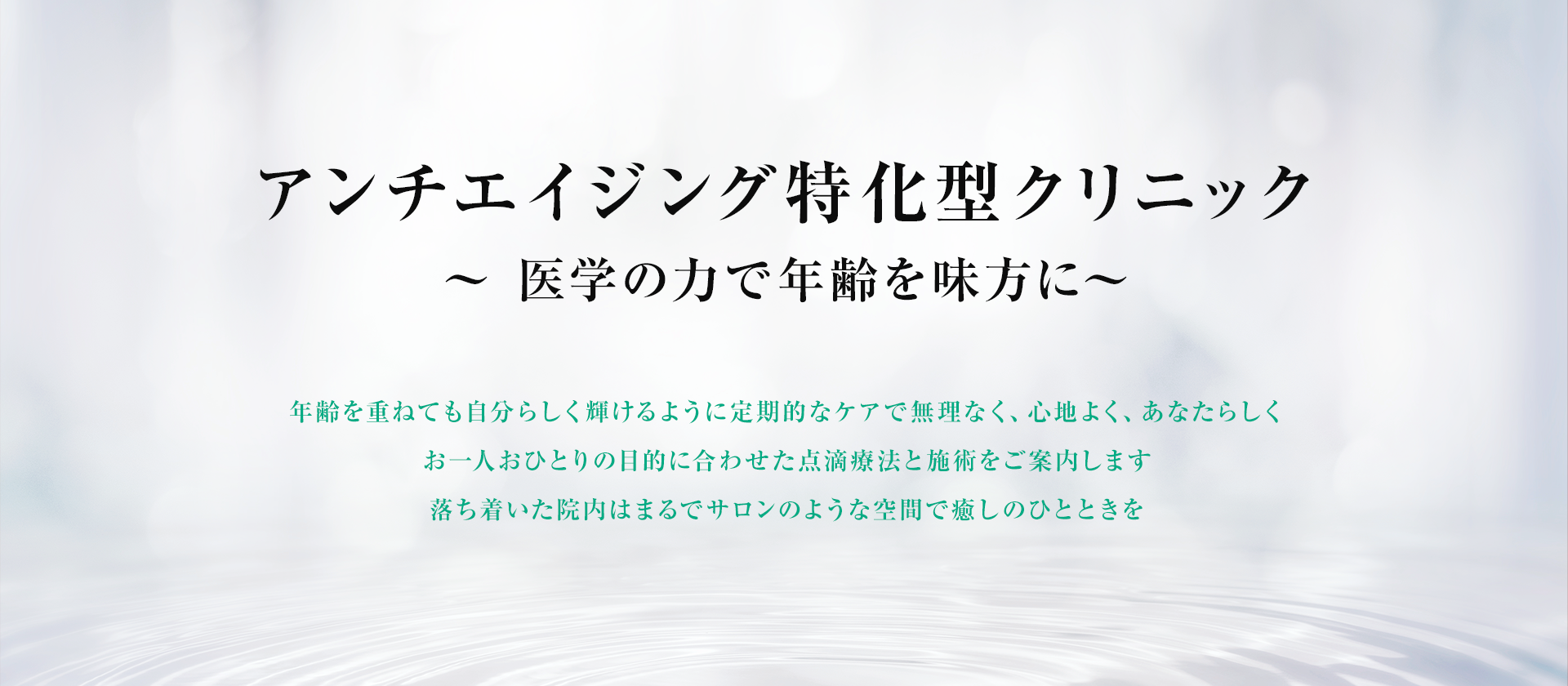 再生医療、美容医療は『人生をより豊かにする新しい医療』です。体の内側からアンチエイジングにアプローチすることで、肌や髪といった外見にも自然な若さや美しさが現れます。日々進化する最新の医療を取り入れ、皆様が健康で自分らしく歳を重ねられるよう、お手伝いをして参ります。未来へ向かう皆様の歩みに希望を添えられるクリニックであり続けたいと考えております。